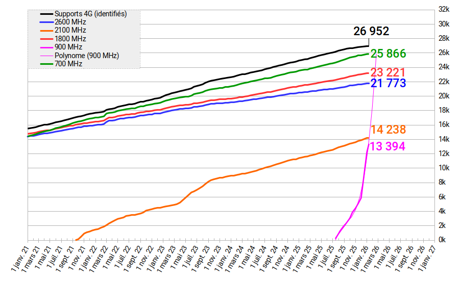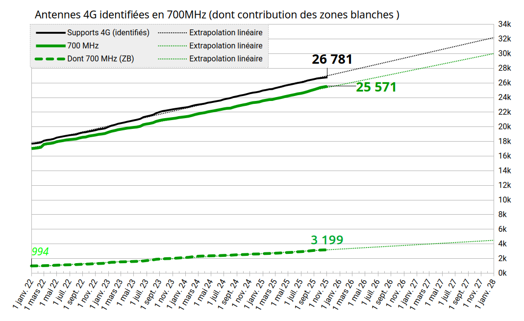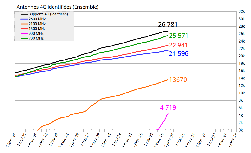 Le cumul des supports 4G identifiés par un contributeur dépasse largement les 25 000 sites.