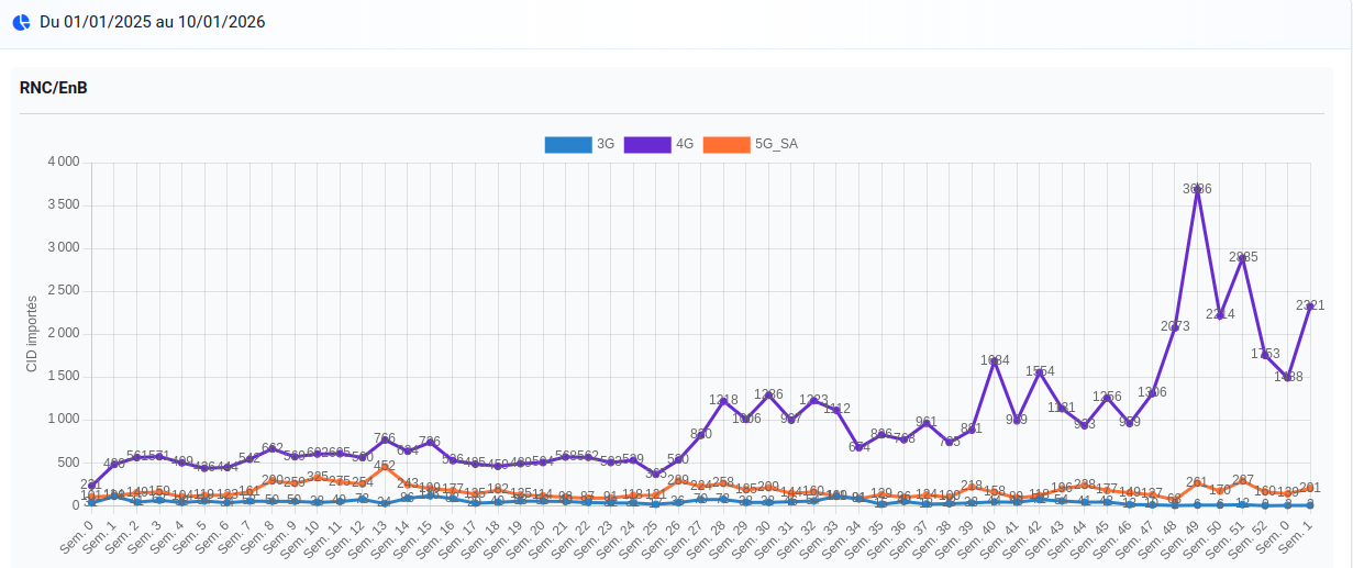 Au 12 janvier 2025, 8071 sites émettant en 5G SA sur 10 523 équipés en 3500 MHz ont été identifiés par un contributeur RNCmobile, soit : 76,7% d'entre eux.